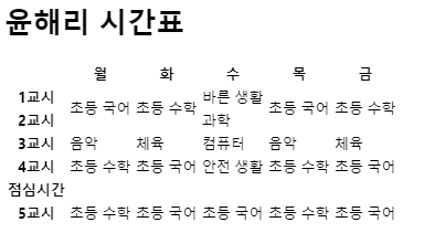 <h1>윤해리 시간표</h1>