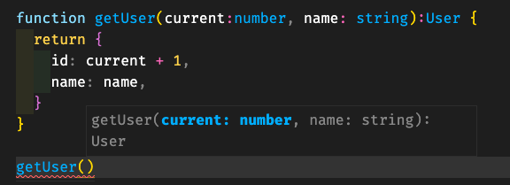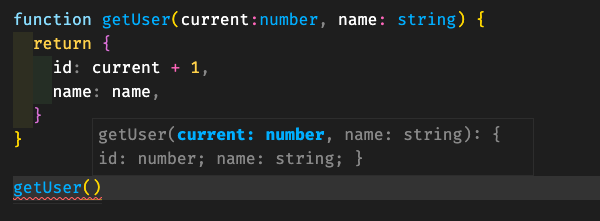 - 유저 정보 객체를 얻어주는 위와 같이 단순한 함수를 생각해보자. 결과 값은 자연스럽게 위와 같이 추론된다. 하지만 결과가 복잡해질수록 위와 같은 타입추론은 시각적으로 불편해지기 시작할 것이다.